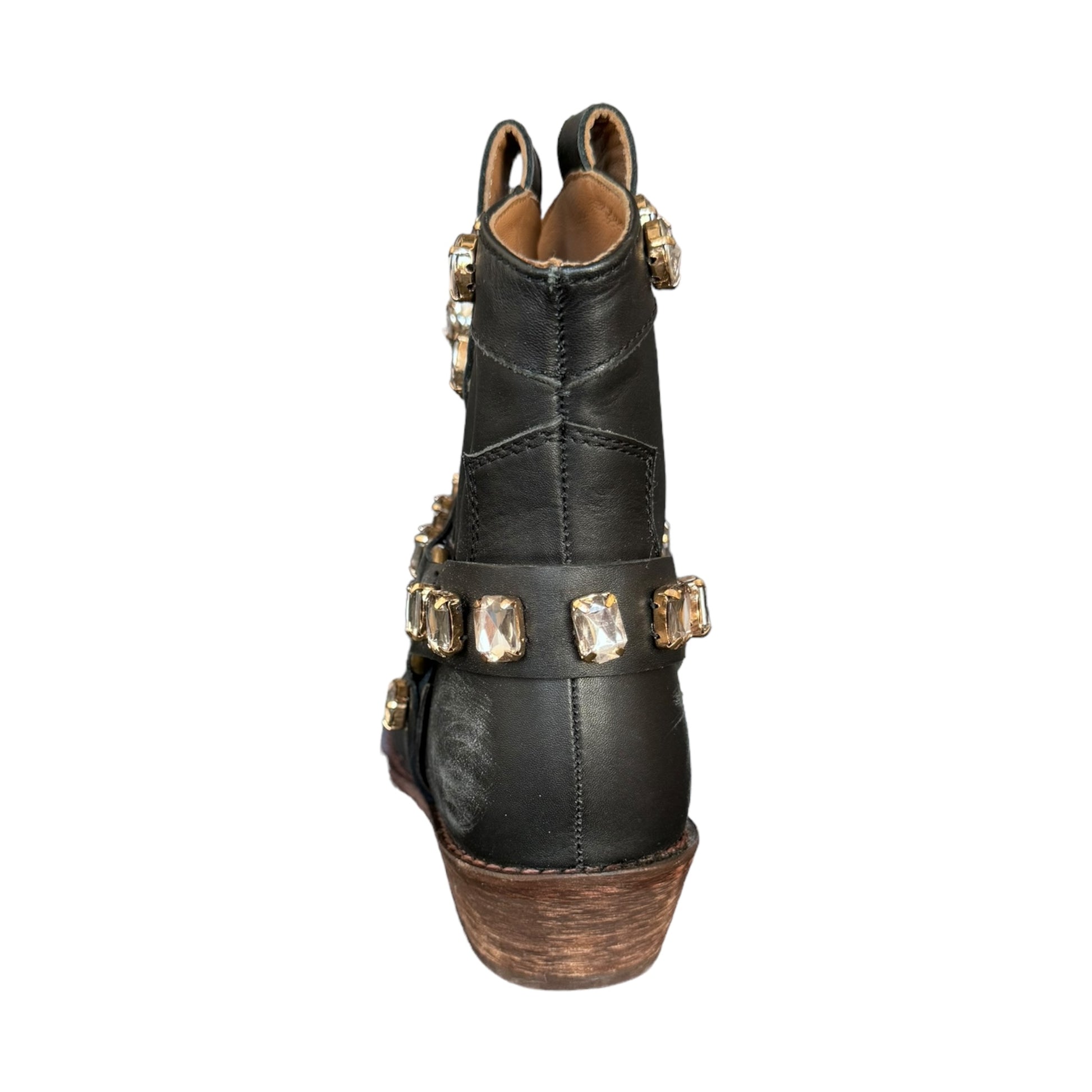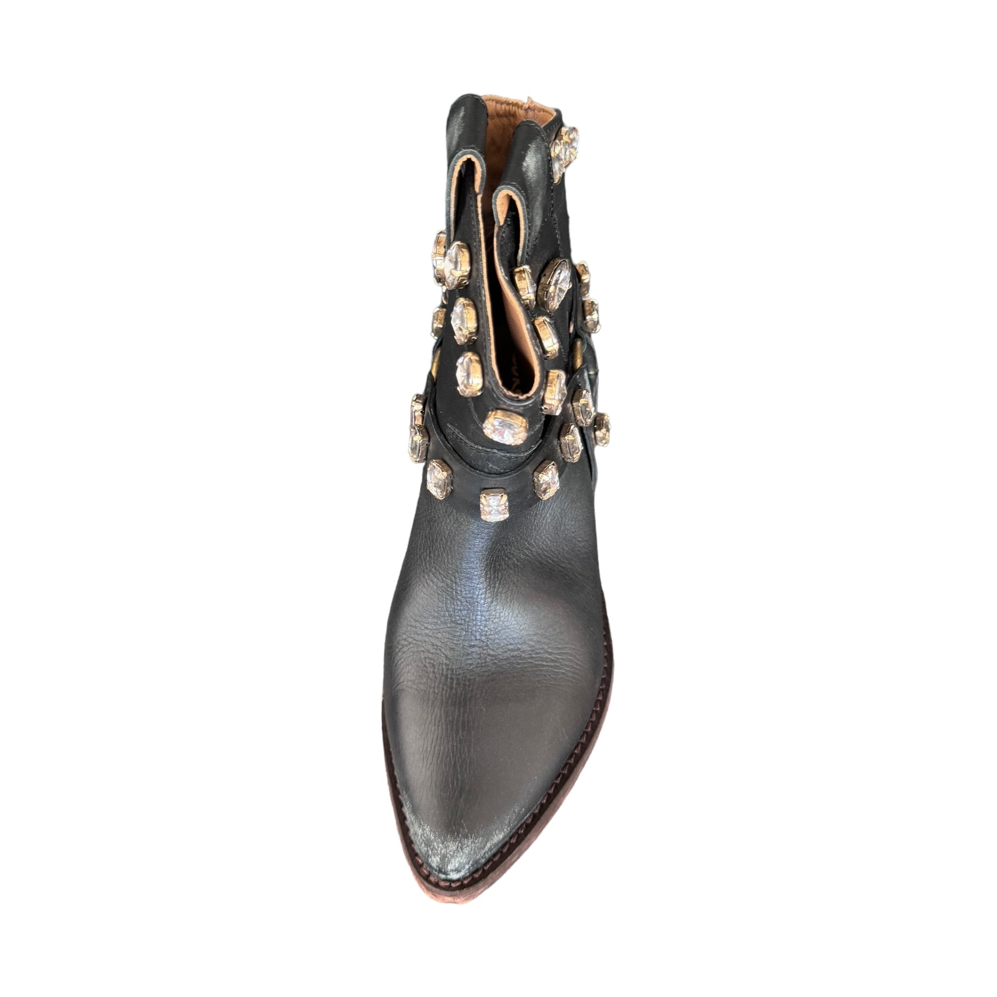 Texano nero effetto consumato con strass in vera pelle e vero cuoio